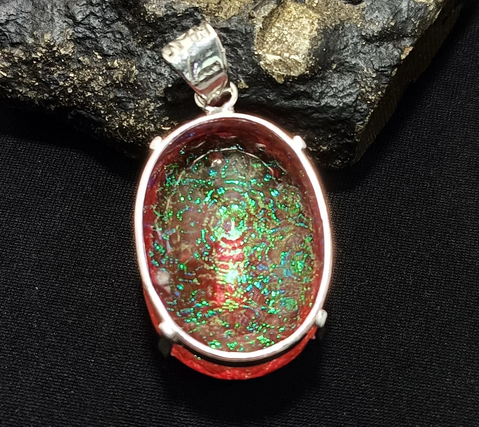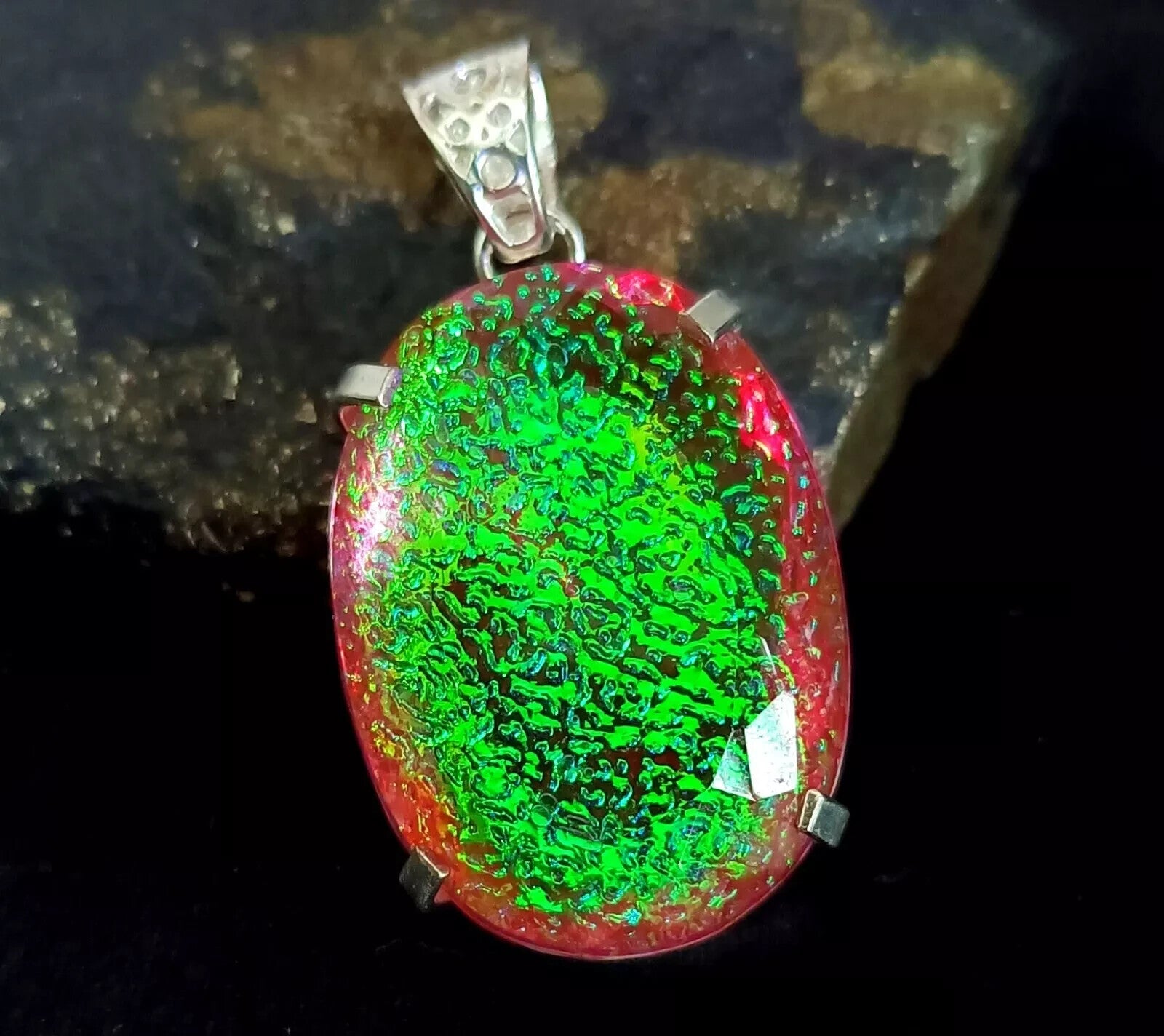 112.90 Ct Natural Oval Monarch Fire Opal Doublet Solid Silver Pendant Gemstone