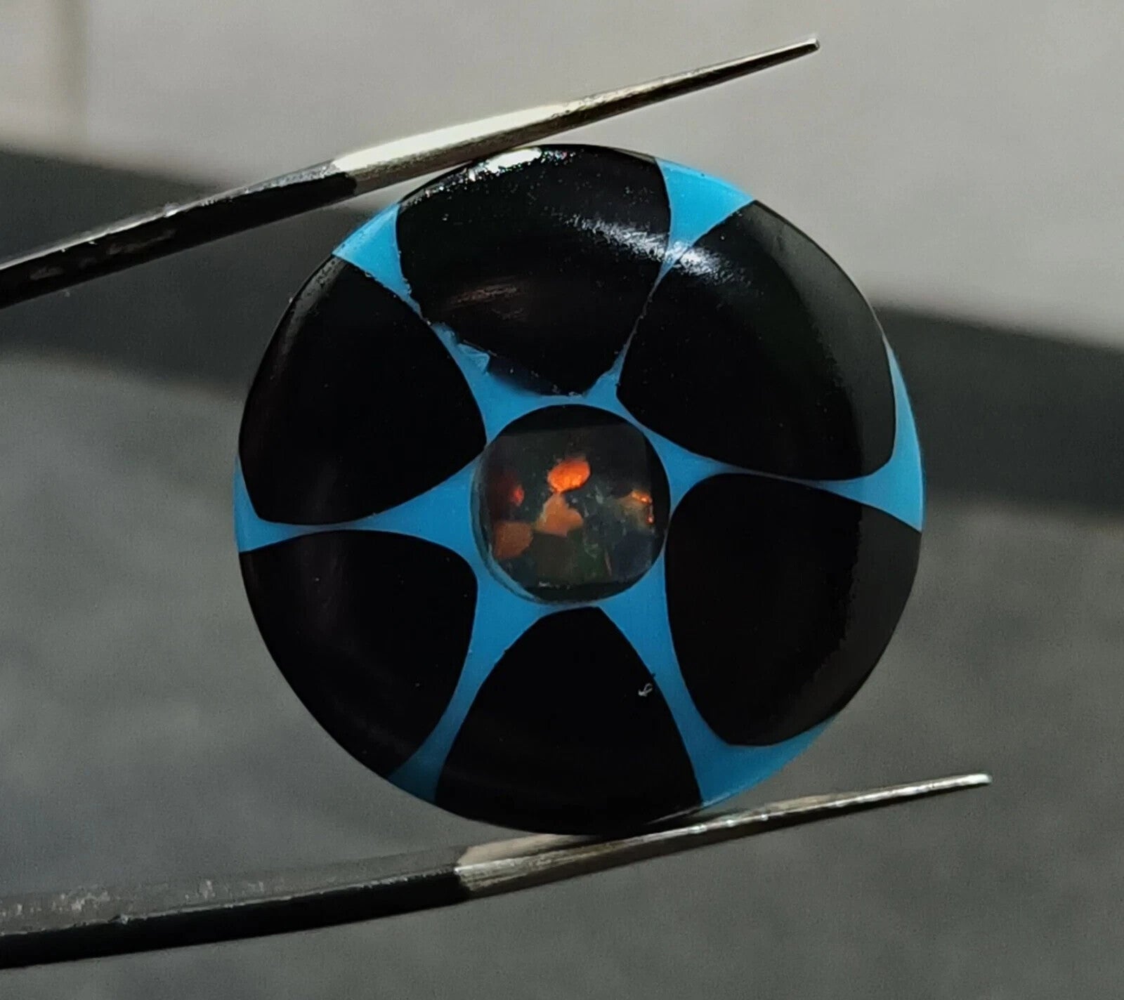16.50 Ct Black &Blue Onyx Trapiche Fire Opal Inside Round Cut Loose Gemstone