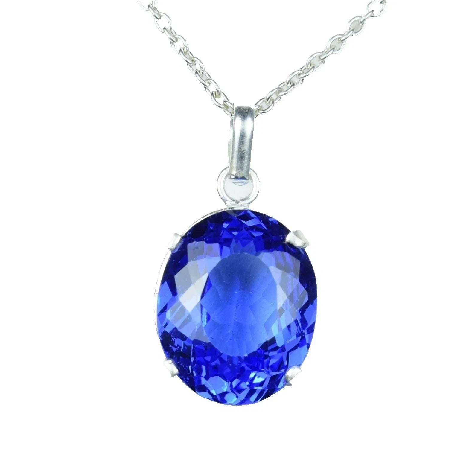 Natural GIE Certified 28 Ct BLUE Sapphire Loose Gemstone In Solid Silver Pendant