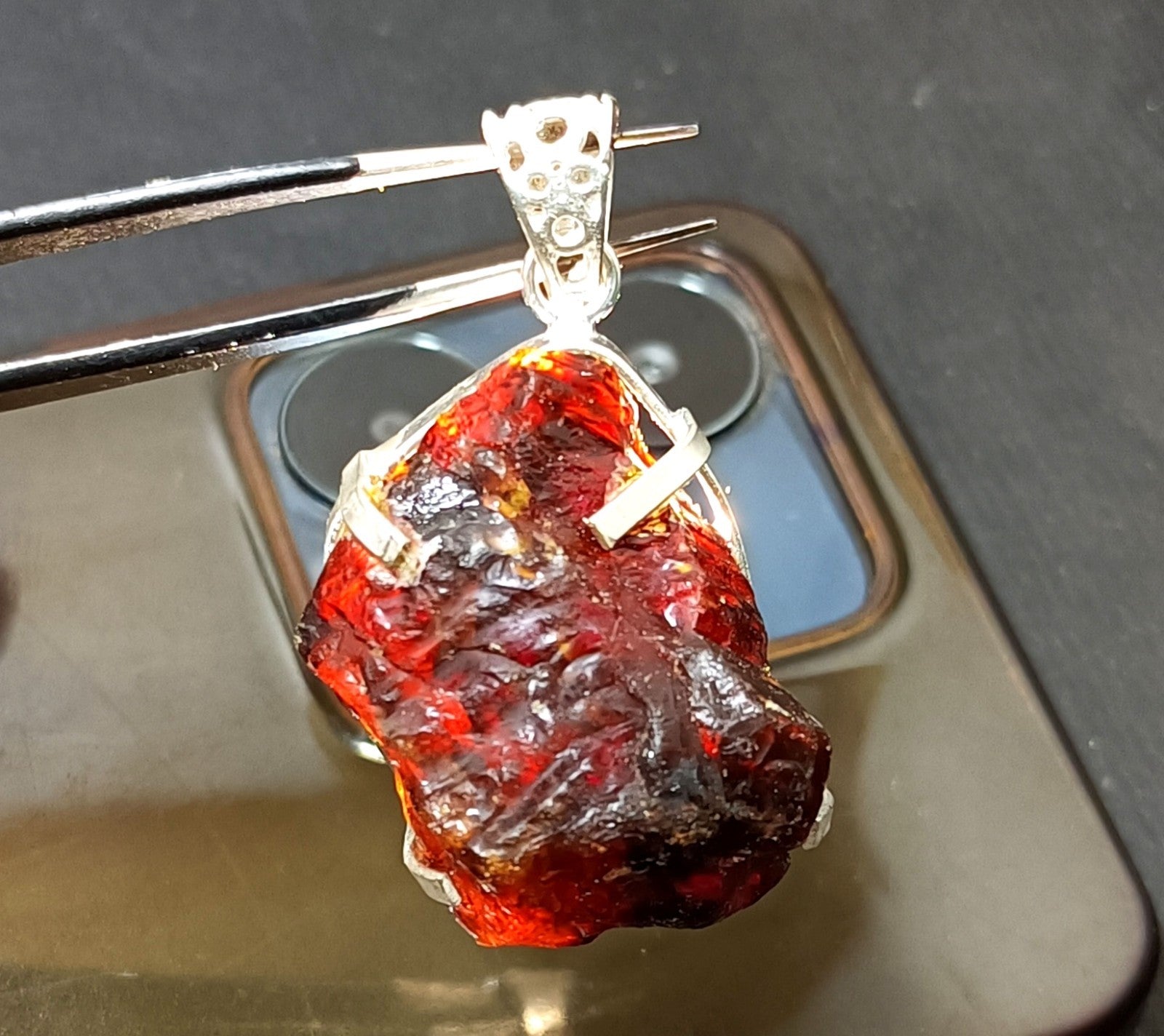 Natural Handmade 49.70 Ct Amber Rough Sterling Solid Silver Pendant Gemstone