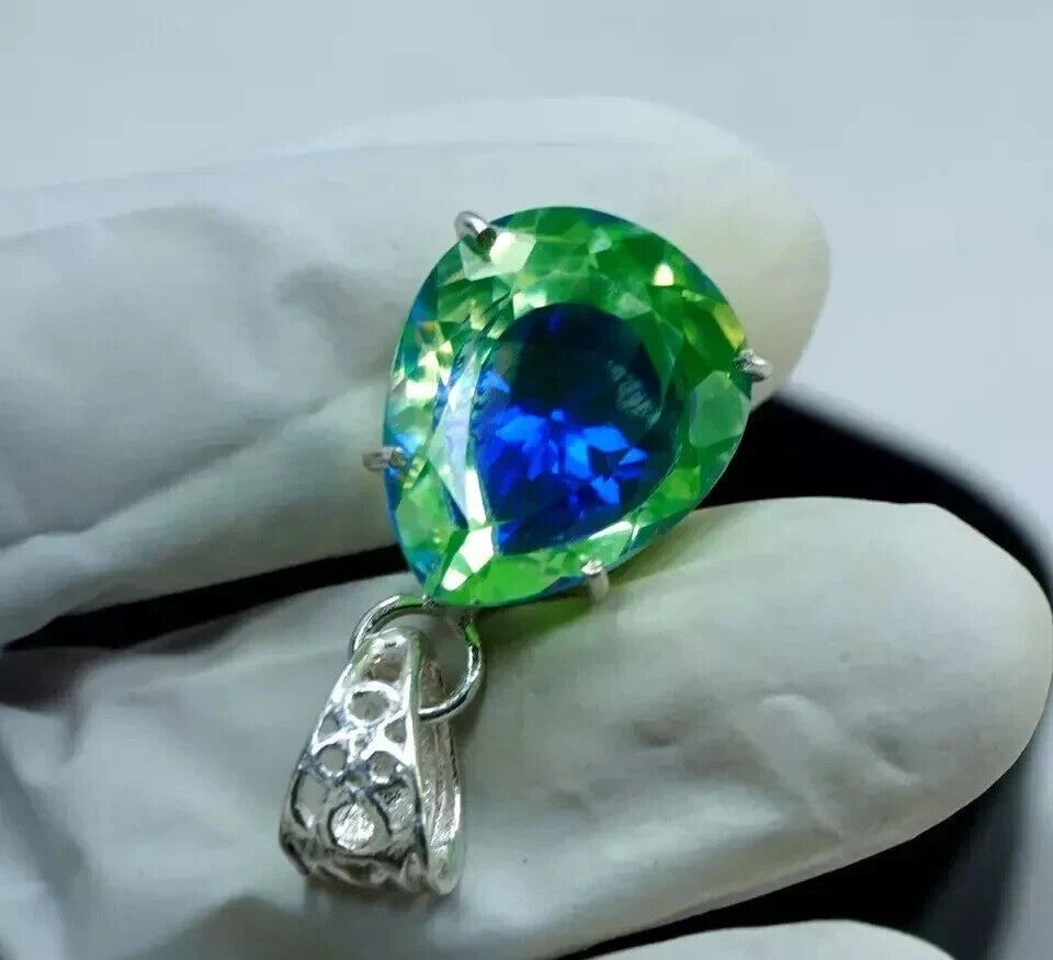 Natural Pitambari Sapphire Certified 30.0 Ct+ Loose Gem 925 Solid Silver Pendant
