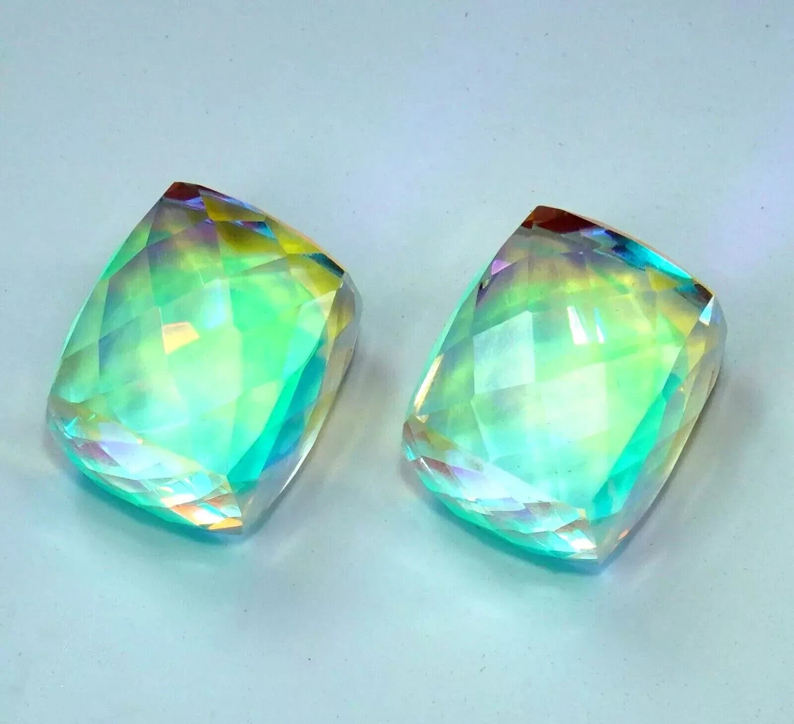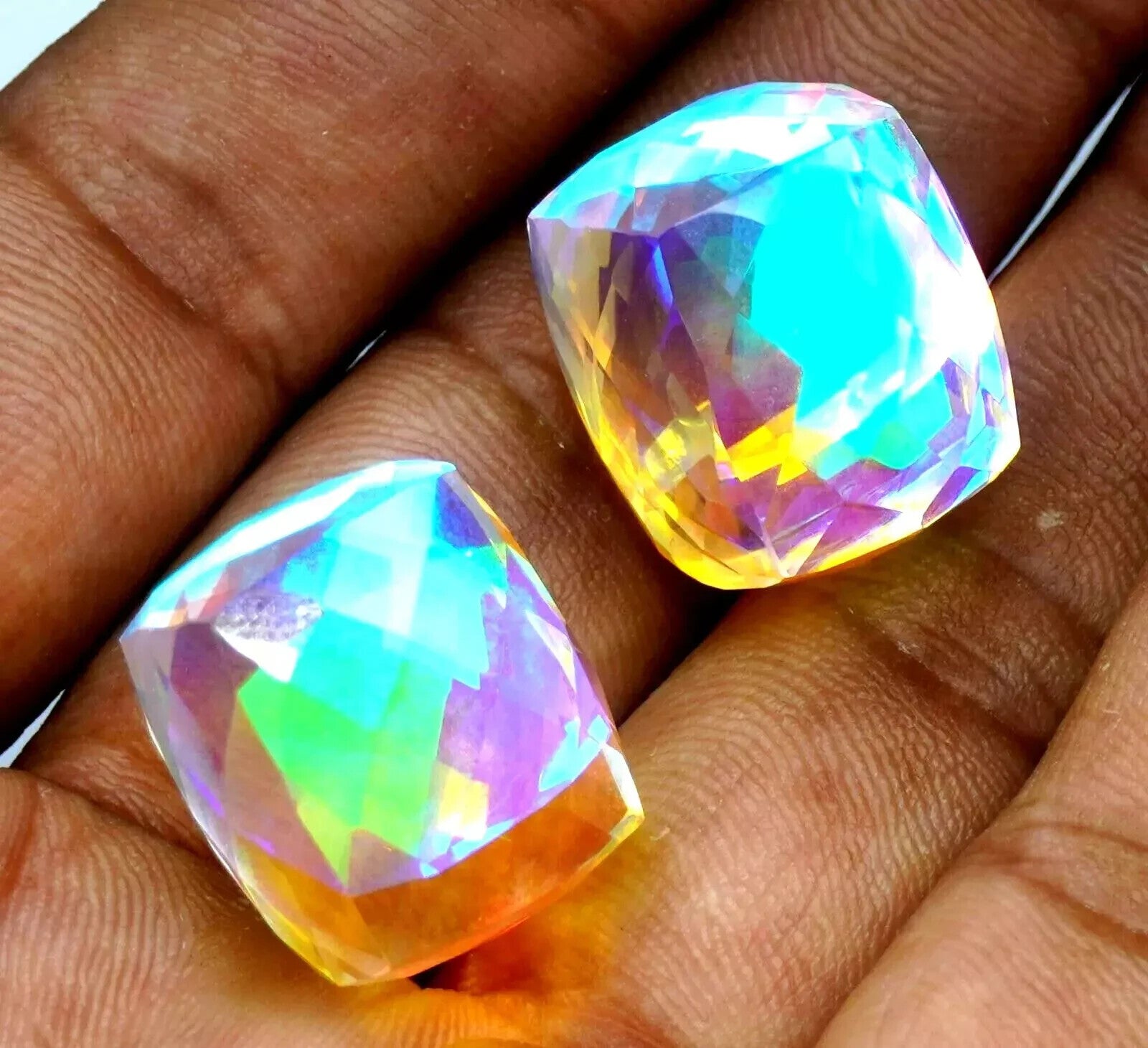 Natural Rainbow Mystic Quartz 98 Ct Cube Cut Untreated Loose GEMSTONE (PAIR 2)