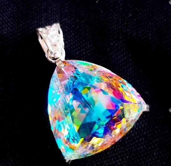 Natural TRILLION Mystic Topaz 80.55 Ct Solid Silver Rainbow Pendant Gemstone