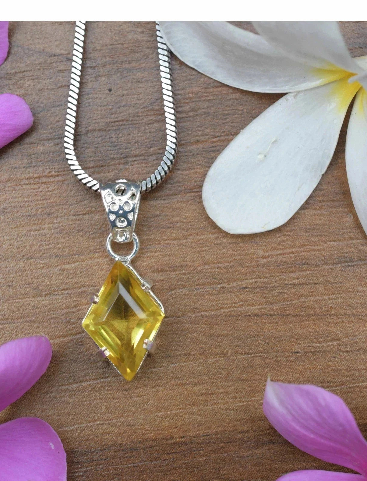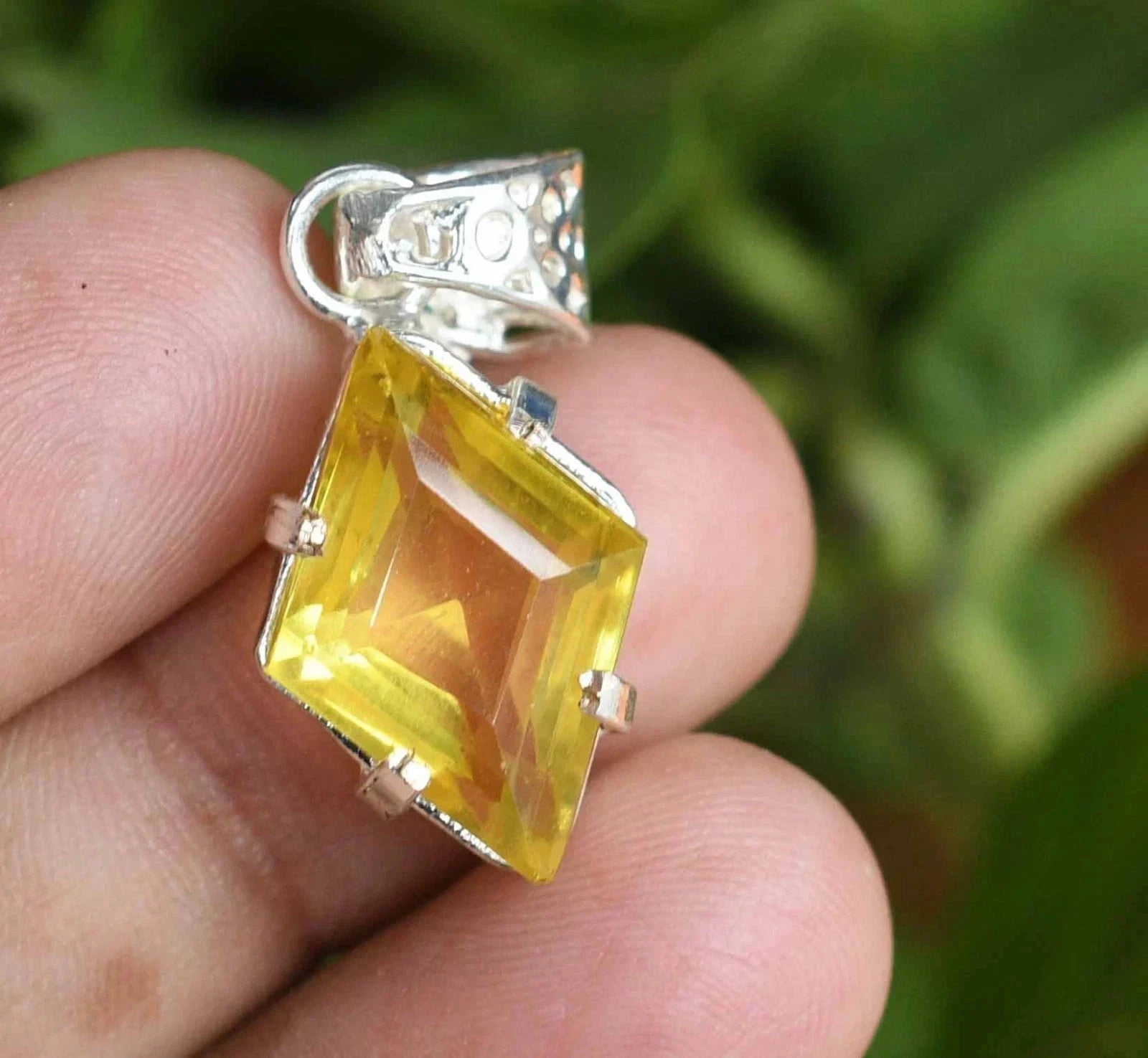 Pendant Fancy Shape Yellow Sapphire 27.30 Ct Loose Gemstone 925 Silver Natural