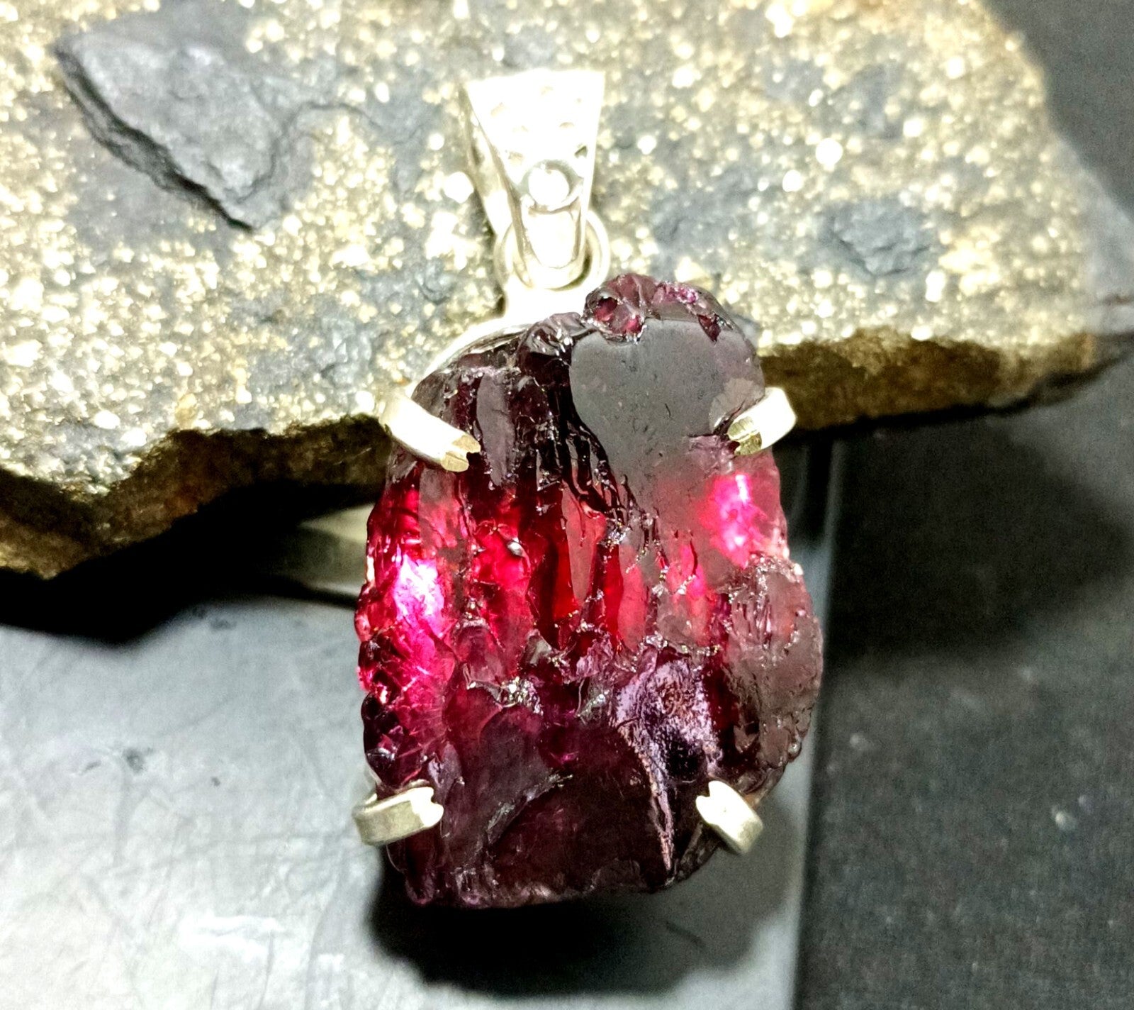 Rough Cut 77.05Ct Painite Gemstone 925 Sterling Silver Pendant,Gift For Her Love