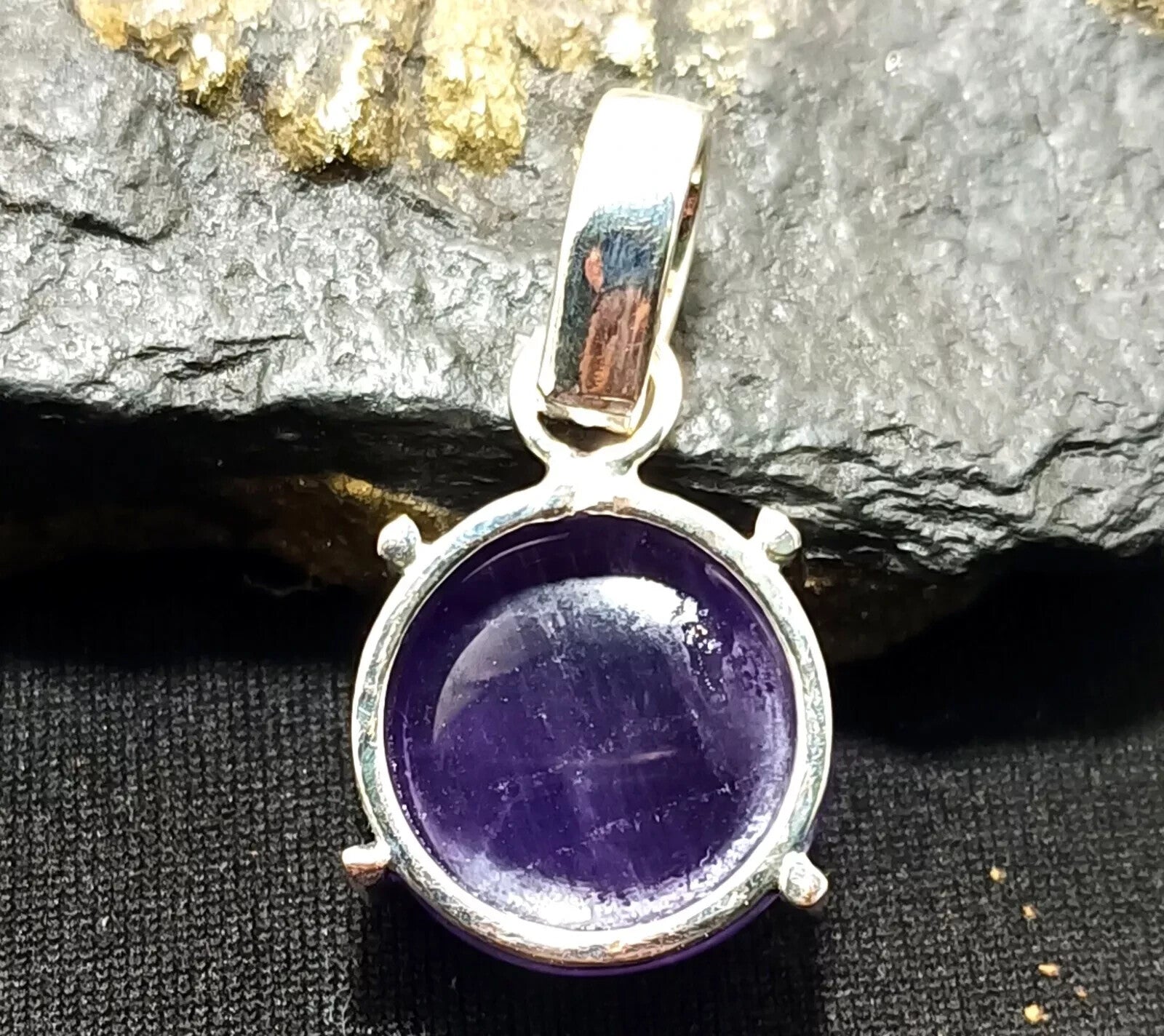 Round Cabochon Natural Violet Amethyst 27.60Ct Sterling Silver Flawless Pendant