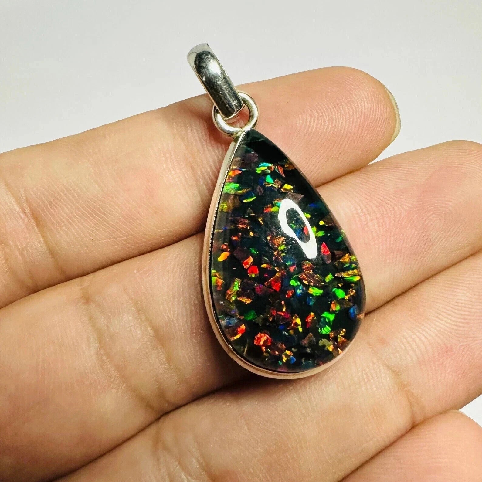 Sterling Silver Triplet Pear Opal Gemstone Handmade Pendant Jewelry 15.45 Ct